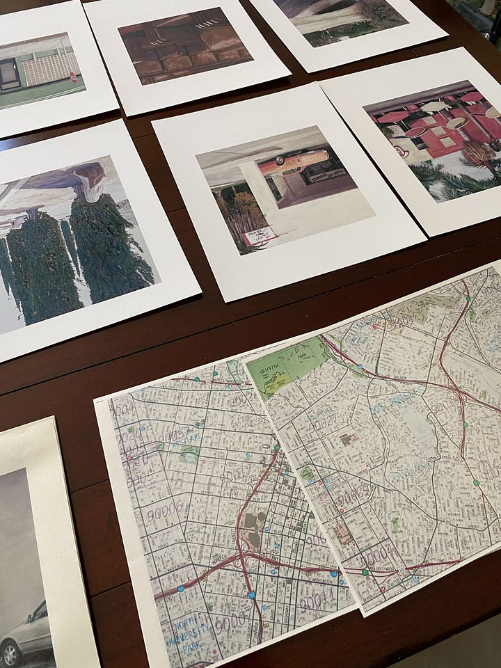 Drawing inspiration from Katsushika Hokusai’s 100 Views of Mt. Fuji, my project captures a quieter side of Southern California, away from the usual glamour and fame. It focuses on the simplicity of daily life, revealing moments of stillness that offer a deeper connection to the place. These moments are quiet slices of mundane life that allow the viewer to connect to this place in a layered way. I’m also incorporating pages from the iconic Thomas Guide, a series of spiral-bound paper atlases that could be found for decades in almost every SoCal glove box. The project will eventually have a total of 100 Impressions.